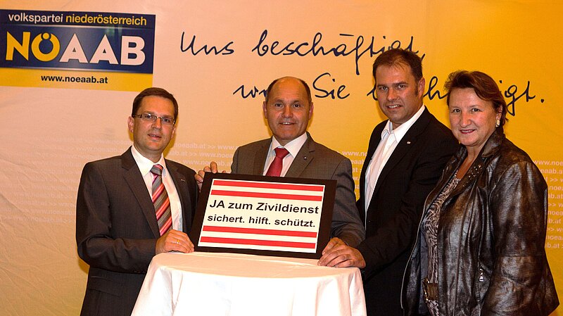 „Fällt die Wehrpflicht, fällt der Zivildienst und damit eines der besten Rettungssysteme der Welt. Aktuell sind 35 Zivildiener im Bezirk Bruck/L, allein beim Roten Kreuz, im Einsatz. Die Standorte Bruck/Leitha, Götzendorf und Hainburg wären ohne den Zivildienst nicht zu betreiben. Weshalb wir uns für ein Ja zur Wehrpflicht bei der Volksbefragung am 20. Jänner stark machen“, informiert NÖAAB-Bezirksobfrau Stvtr. Christine Besser. „Nur mit der Wehrpflicht können wir eine flächendeckende Versorgung sicherstellen. Denn fast 80 Prozent unserer Zivildiener bleiben auch nach ihrer Präsenzzeit als Freiwillige dabei. Und aus ihrem Umfeld kommen weitere Freiwillige hinzu“, erklärt Rot-Kreuz-Landesgeschäftsführer Peter Kaiser. LH-Stv. Wolfgang Sobotka betont: „Wir haben heute eines der besten Rettungssysteme der Welt. In 98 Prozent aller Einsätze ist ein Rettungswagen in weniger als 10 Minuten vor Ort. International vergleichbare Regionen rangieren bei 15 Minuten und mehr“. „Zivildiener sind überwiegend im Einsatz im Rettungswesen (44%), in der Sozial- und Behindertenhilfe (32%) in der Altenbetreuung (9%) und in Krankenanstalten (6%). Es kommt nicht von ungefähr, dass immer mehr Verantwortungsträger aus allen Parteien die Wichtigkeit ihrer Arbeit anerkennen und sich für die Wehrpflicht aussprechen“, erklärt der Zivildienstsprecher im Nationalrat August Wöginger aus Oberösterreich.