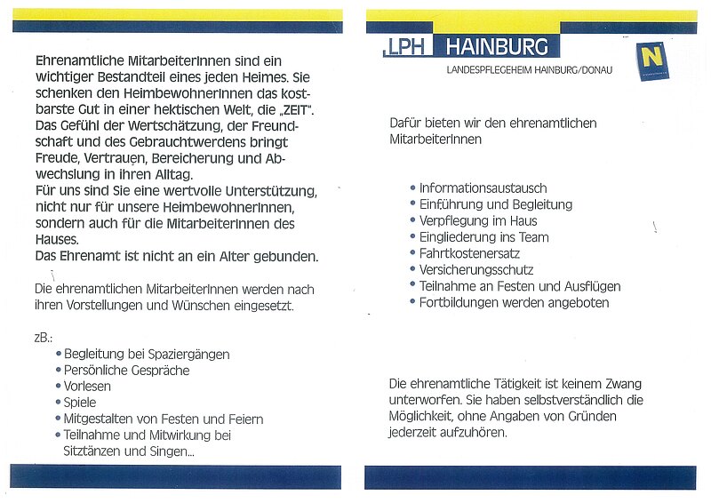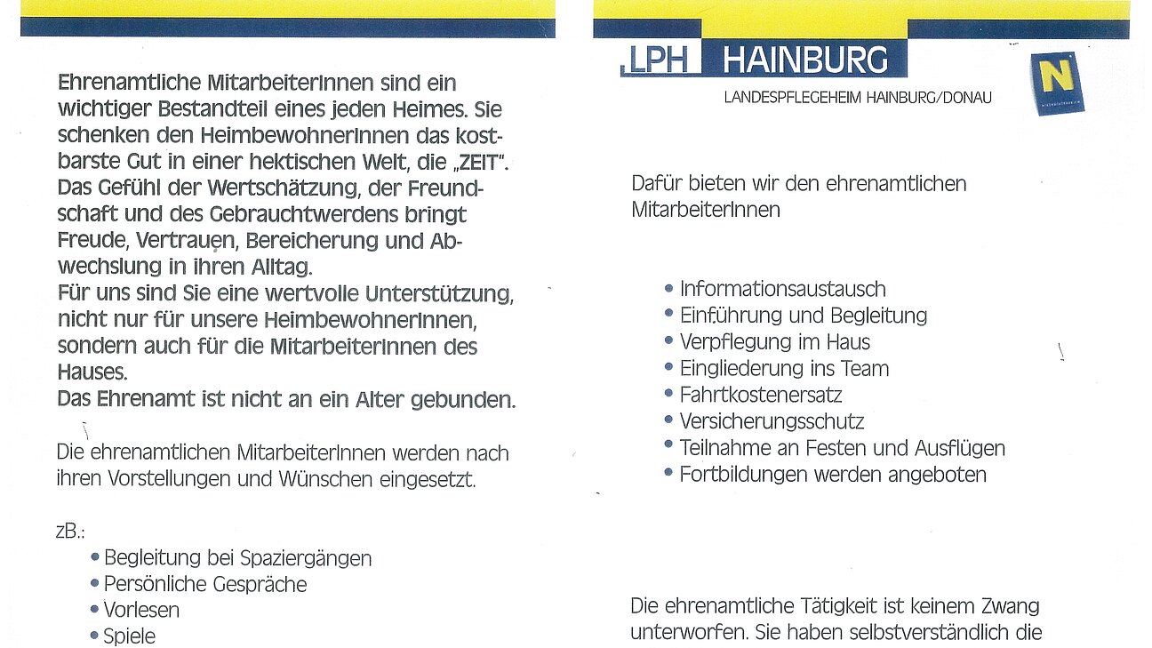 Ehrenamtliche Mitarbeit im Landespflegeheim Hainburg