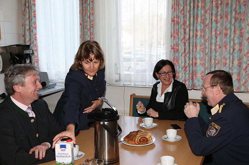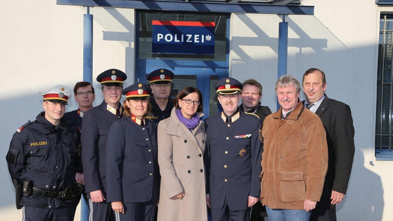 Innenministerin Johanna Mikl-Leitner besuchte auf Ersuchen der VP-Bezirksparteispitze, allen voran Bgm. Gerhard Schödinger, am 21.2. das Bezirkspolizeikommando in Bruck, um sich einerseits von den ersten Erfolgen der in den letzten Monaten gesetzten sicherheitspolitischen Maßnahmen berichten zu lassen und weitere konkrete Schritte zur Sicherheit der Bürger im Bezirk bei einer kurzen Kaffeejause zu besprechen. Begrüßt wurde die Innenministerin von Landespolizeidirektor HR Dr. Franz Pucher und Bezirkspolizeikommandantin Sabine Zentner.