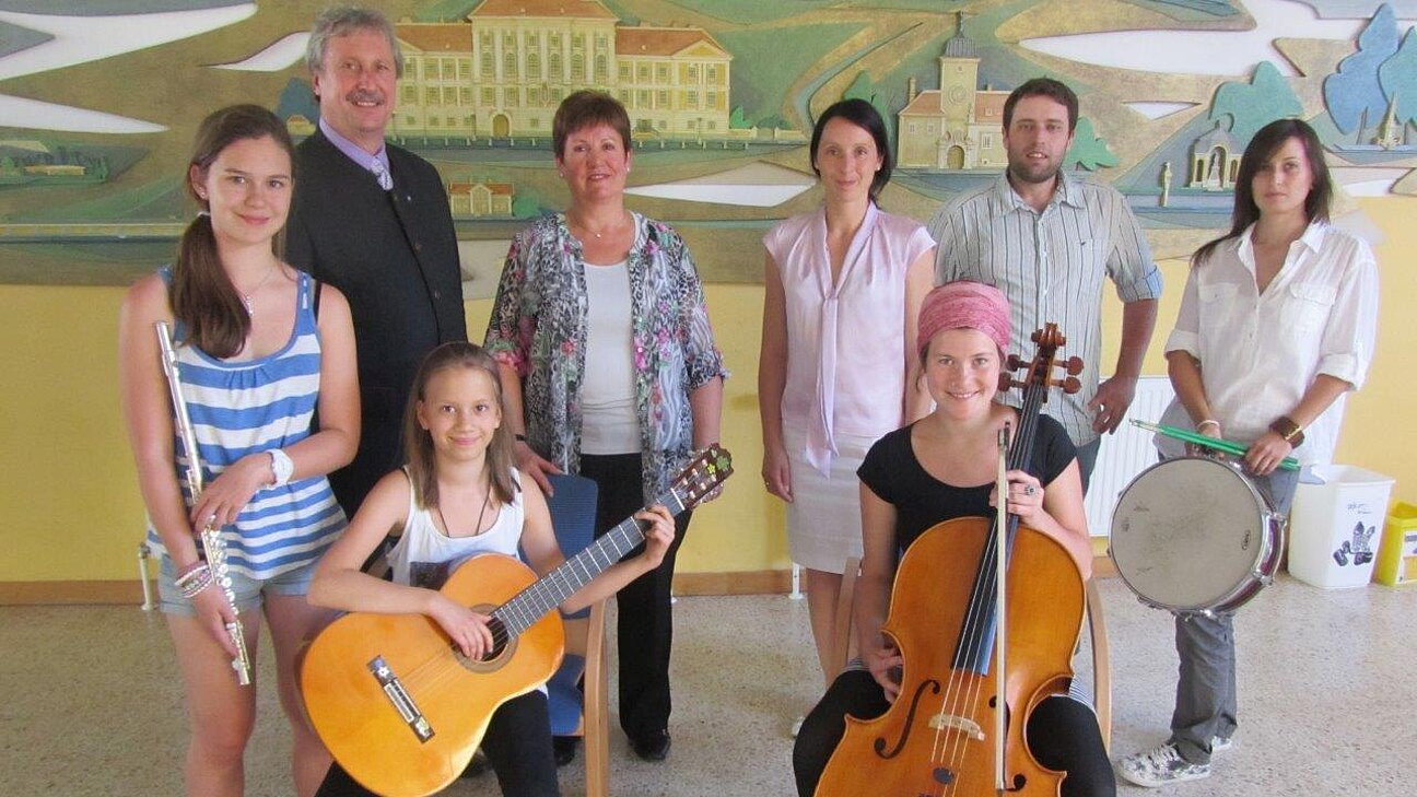 „Musikschulkosten für Kinder bis zum 10. Lebensjahr sind ab heuer steuerlich absetzbar, damit bekommen Eltern ein Drittel bis zur Hälfte der Kosten wieder zurück. Diese Neuregelung konnte der NÖAAB im Rahmen seiner Arbeitnehmerveranlagungskampagne 2013 bewirken. Auch bei uns im Bezirk gab es beim Steuervortrag vor einigen Monaten diesbezüglich zahlreiche Anfragen. Unterm Strich profitieren allein bei uns im Bezirk Bruck/L. 688 Musikschülerinnen und Musikschüler, also jene die jünger sind als 10 Jahre, und natürlich deren Familien“, informiert NÖAAB-Bezirksobmann Gerhard SCHÖDINGER. „Das gute Zusammenspiel zwischen parteipolitischer Forderung, Bürgerservice sowie Bezirks-, Landes- und Bundespolitik war dabei entscheidend. Wolfgang Sobotka hat als NÖAAB-Obmann die Initiative zu unseren Arbeitnehmerveranlagungen gesetzt und verantwortet gleichzeitig die Musikschulen im Land. Wir im Bezirk haben Brennpunkte weitergeleitet, die rasch aufgegriffen und umgesetzt wurden“, freut sich Gerhard Schödinger über das Ergebnis. „NÖ ist das Land mit der größten Dichte an Musikschulen. Bei uns erfährt Musik, ob traditionell oder modern allerhöchste Wertschätzung. Gerade für die Ausbildung junger Talente stellt eine steuerliche Absetzbarkeit eine spürbare Erleichterung dar“, so auch Renate Kousal, die gemeinsam mit Gerhard Schödinger die Musikschule in Mannersdorf besuchte. An der Musikschule in Mannersdorf mit ihren rund 200 Schülern werden fast alle Instrumente unterrichtet. Ab Herbst 2013 will man zusätzlich dazu mit Gesangsunterricht beginnen und früher oder später eventuell sogar ein Musical vorführen, so die ambitionierten Pläne von Frau Mag. Katharina BAMMER, der Leiterin der Musikschule Mannersdorf.